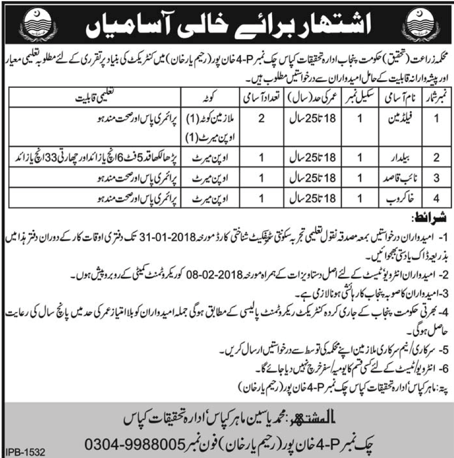 Latest Agriculture Department Labor Posts Rahim Yar Khan 2025