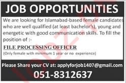 Vacant posts including file processing officer are announced in Private Company Islamabad, islamabad Islamabad Pakistan as per 28 May 2023 advertisement in daily The News Newspaper. Educational qualifications required Master and Bachelor etc.