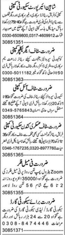 Private jobs advertisement dated about 24 May 2023 in daily Express Newspaper invites application for the vacant post of lady security guard, security supervisor, female filler, retired government staff and security guard in Lahore, lahore Punjab Pakistan. Persons with Middle, Intermediate, Matric and Bachelor etc. education can apply.