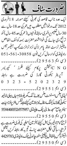 Apply as per details in job advertisement. Login to view further details of how to apply via https://www.jobz.pk online.