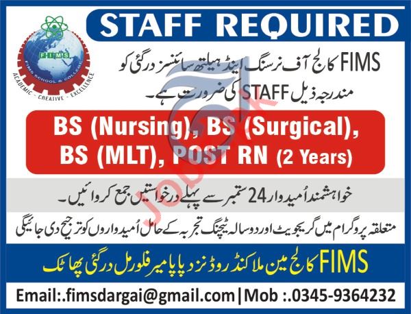FIMS College of Nursing & Health Sciences Malakand Jobs 2018