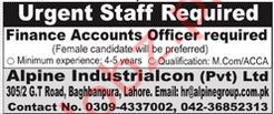 Latest Alpine Industrialcon Pvt Limited Finance Posts Lahore 2025