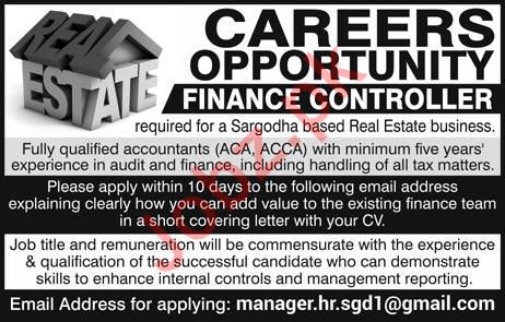 Finance Controller Jobs In Real Estate Company