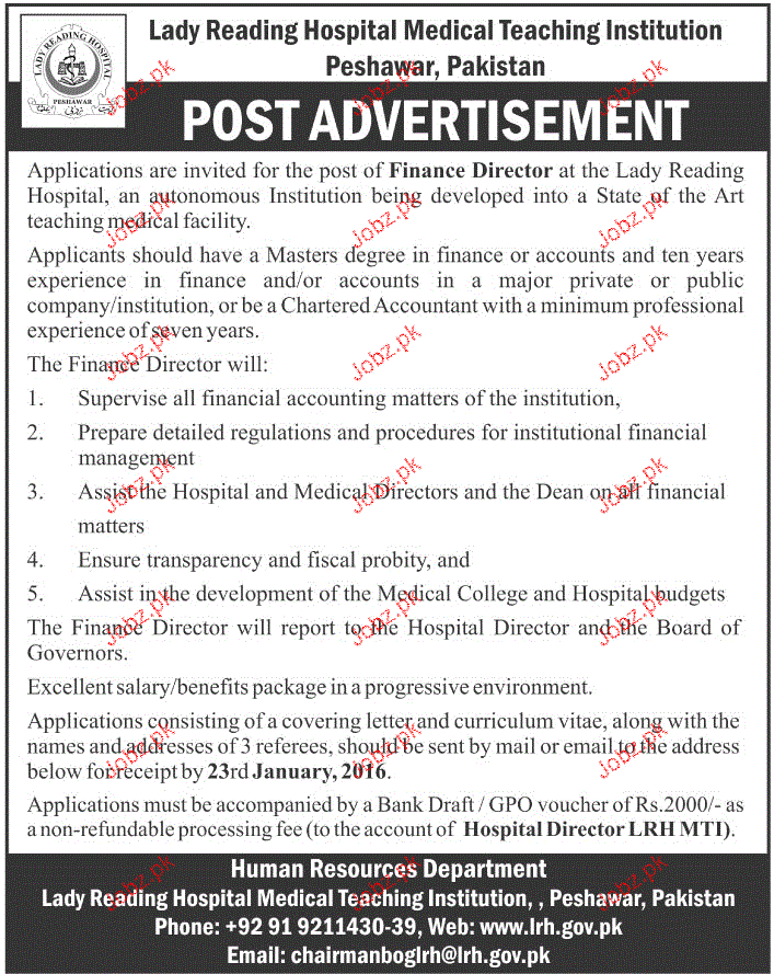 Apply as per details in job advertisement. Login to view further details of how to apply via https://www.jobz.pk online.