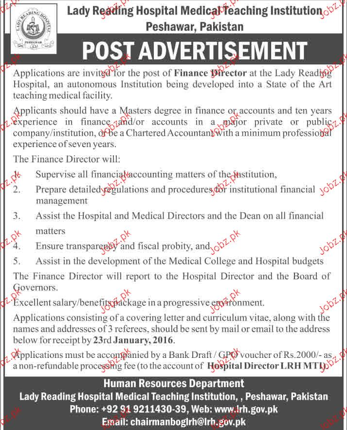 Apply as per details in job advertisement. Login to view further details of how to apply via https://www.jobz.pk online.