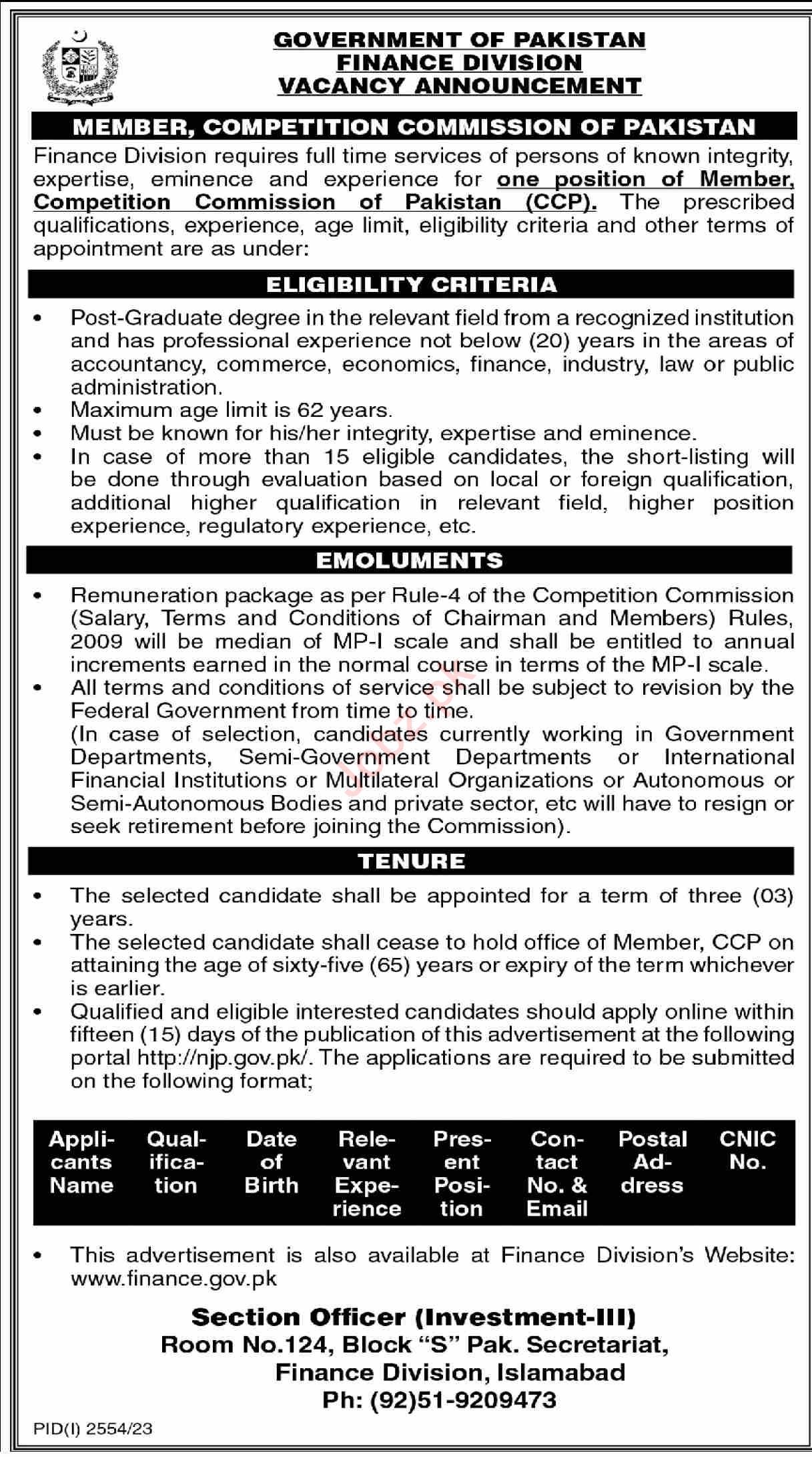 Finance Division jobs advertisement dated about 29 October 2023 in daily Dawn Newspaper invites application for the vacant post of member in Islamabad, islamabad Islamabad Pakistan. Master, Bachelor and MS etc. educational qualification will be preferred.