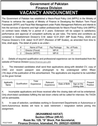 Apply as per details in job advertisement. Login to view further details of how to apply via https://www.jobz.pk online.