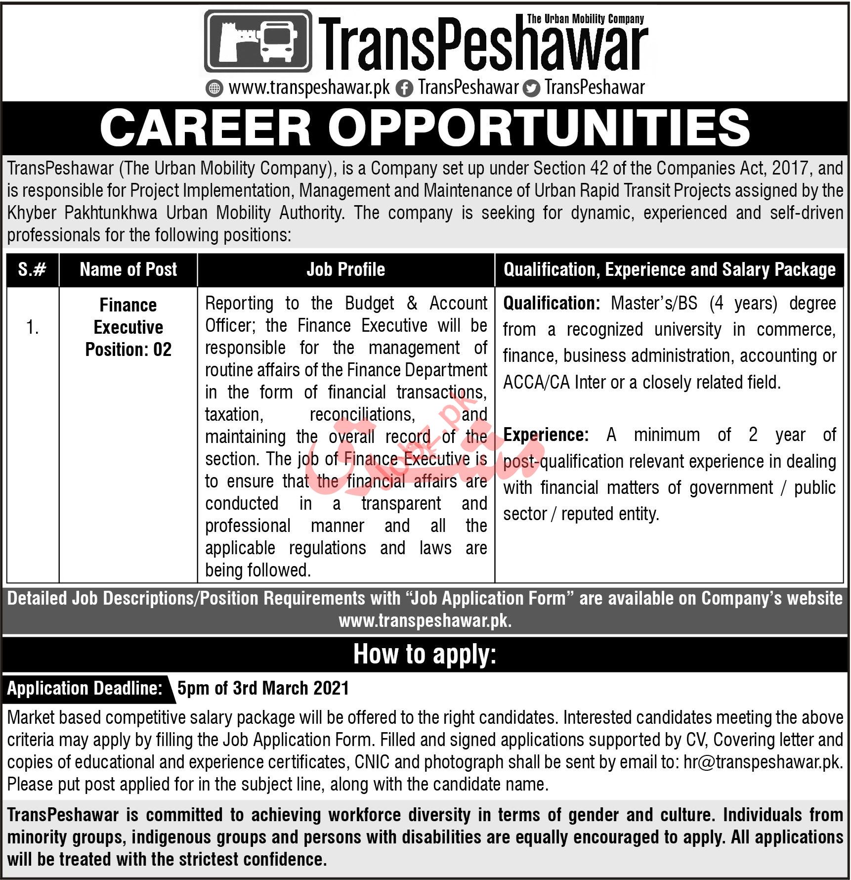 Vacancies in TransPeshawar Advertisement February 2021