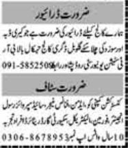 Private Company is looking for candidates for following posts as per job advertisement published in daily Mashriq Newspaper of December 9, 2022 for location Peshawar, peshawar Khyber Pakhtunkhwa KPK Pakistan:
