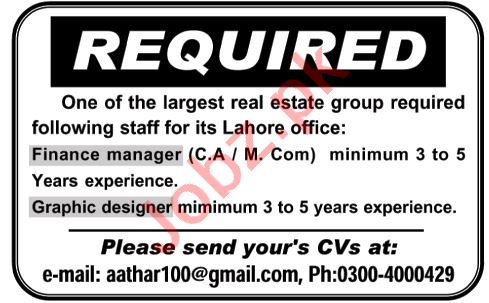 Finance Manager & Graphic Designer Jobs 2020 In Lahore