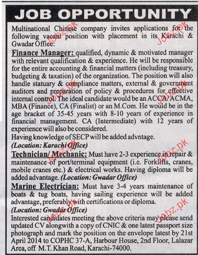 Finance Manager, Technicians / Mechanics Job Opportunity