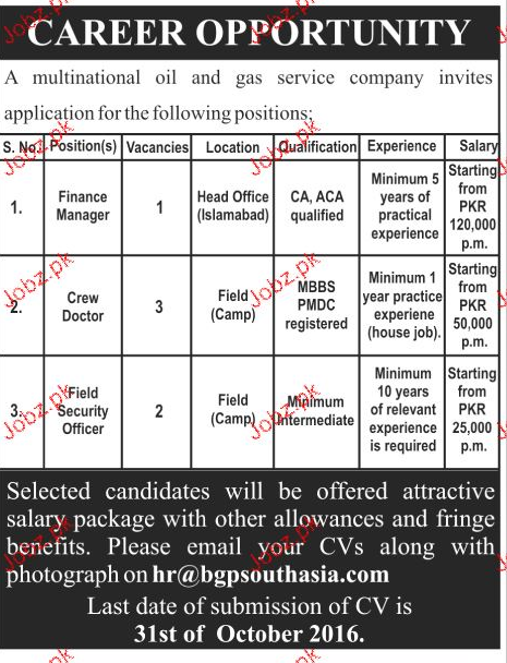 Apply as per details in job advertisement. Login to view further details of how to apply via https://www.jobz.pk online.