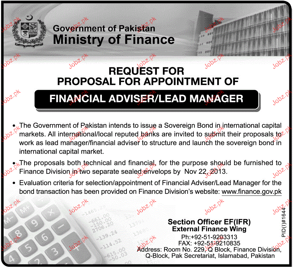 Financial Advisers / Lead Manager Job In Ministry Of Finance