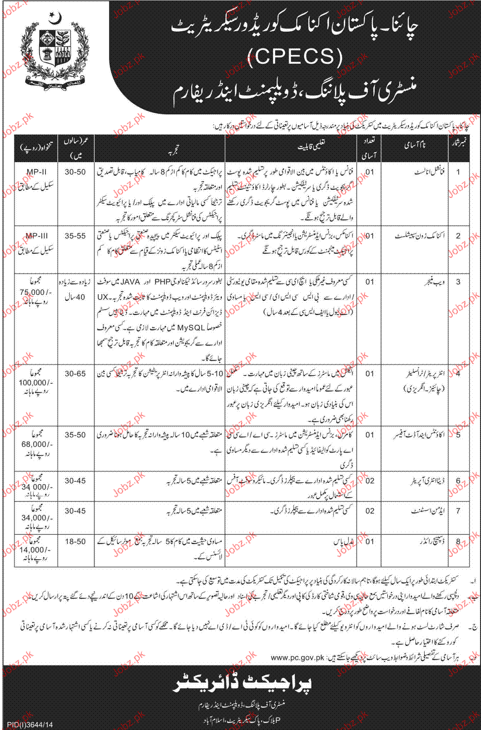 Apply as per details in job advertisement. Login to view further details of how to apply via https://www.jobz.pk online.
