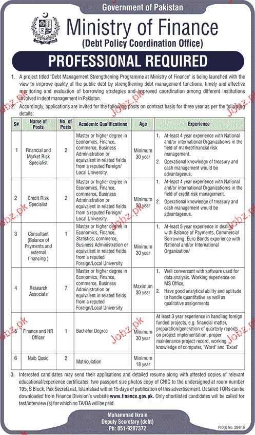 Apply as per details in job advertisement. Login to view further details of how to apply via https://www.jobz.pk online.
