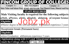Latest Fincom Group of Colleges Teaching Posts Islamabad 2025