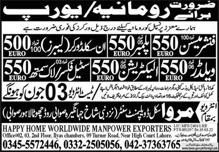 Marwa Skill Development Center invites applications for job positions advertised in daily Express dated 1 June 2022 for following vacancies in Romania, romania Romania.