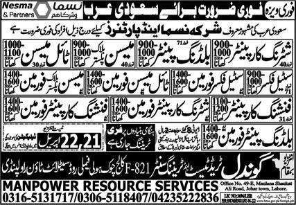Vacant posts including mason foreman, tile mason foreman, block mason foreman, block mason, plaster mason foreman, steel fixer, steel fixer foreman, shuttering carpenter foreman, building painter, finishing carpenter foreman, shuttering carpenter, finishing carpenter, tile mason, mason, building painter foreman and plaster mason are announced in Gondal Trade Test & Training Center Dammam, dammam Saudi Arabia as per 16 April 2022 advertisement in daily Express Newspaper. Middle, Matric and Intermediate etc. educational qualification will be preferred.