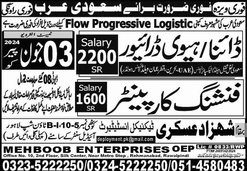 Finishing Carpenter & Heavy Driver Jobs 2024 in Saudi Arabia
