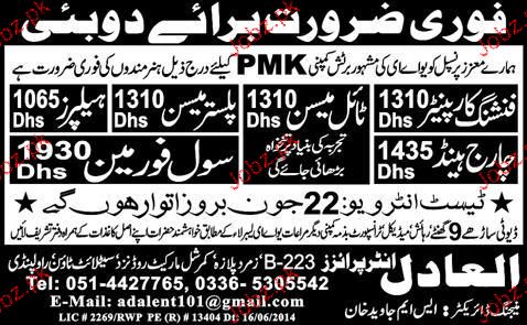 Finishing Carpenters, Plaster Mason Job Opportunity