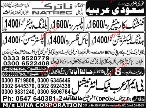 Finishing Carpenters, Plaster Mason Job Opportunity