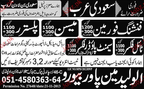 Finishing Foreman, Mason, Plasters Job Opportunity