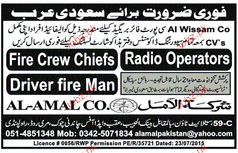 Fire Crew Chiefs, Radio Operators Job Opportunity