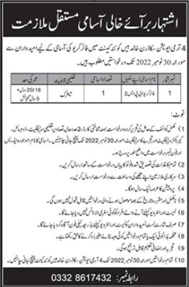 Vacant posts including fire crew are announced in Pakistan Army Quetta, quetta Balochistan Pakistan as per 15 November 2022 advertisement in daily Jang Newspaper. Candidates with Matric etc. educational background will be preferred.