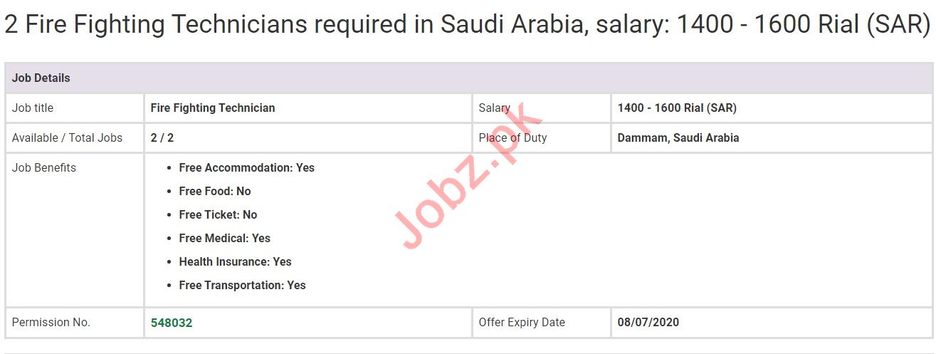 Fire Fighting Technician Jobs in Dammam Saudi Arabia