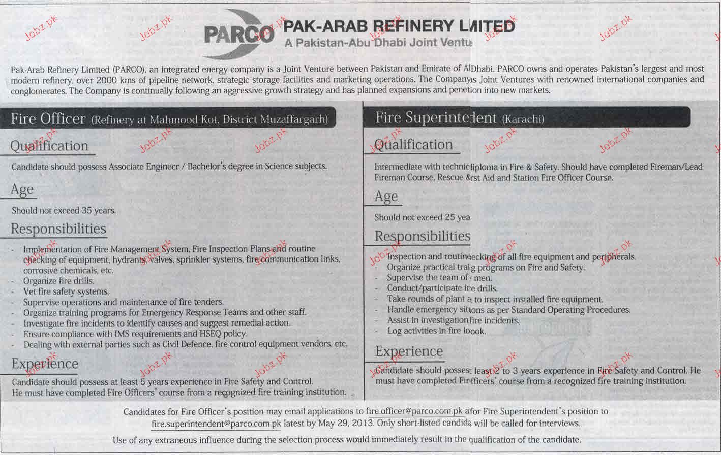 Apply as per details in job advertisement. Login to view further details of how to apply via https://www.jobz.pk online.
