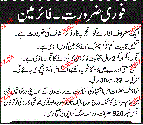 Apply as per details in job advertisement. Login to view further details of how to apply via https://www.jobz.pk online.