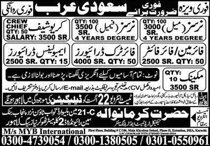 Apply at Hazrat Karmanwala Technical Trade Test & Training Center latest Overseas jobs in Manufacturing and departments before closing date which is around August 22, 2024 or as per closing date in newspaper ad. Read complete ad online to know how to apply on latest Hazrat Karmanwala Technical Trade Test & Training Center job opportunities. Chef, Health and Medical skills may beneficial for these Hazrat Karmanwala Technical Trade Test & Training Center jobs. Salary varies from 292000. Overtime is allowed. During job transport, accommodation and medical facility is available.