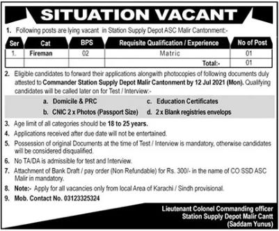 Latest Station Supply Depot Army jobs Posts Karachi 2025