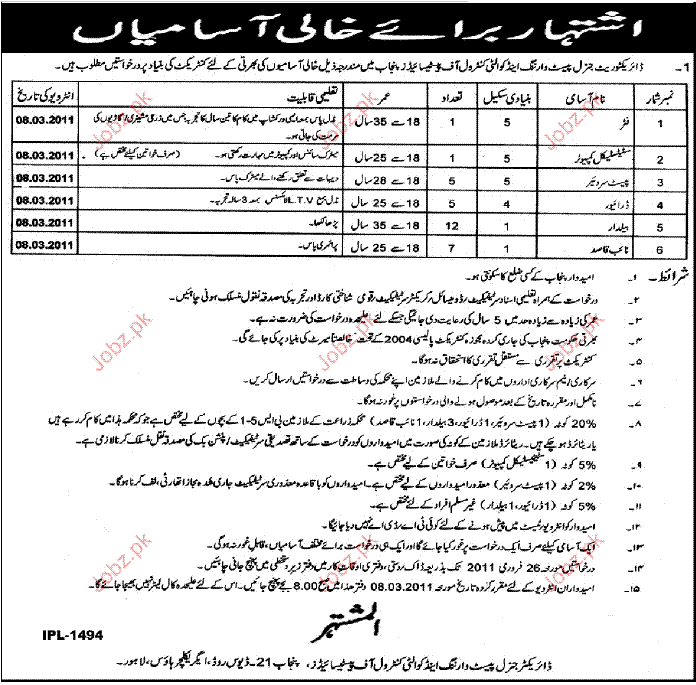 Apply as per details in job advertisement. Login to view further details of how to apply via https://www.jobz.pk online.