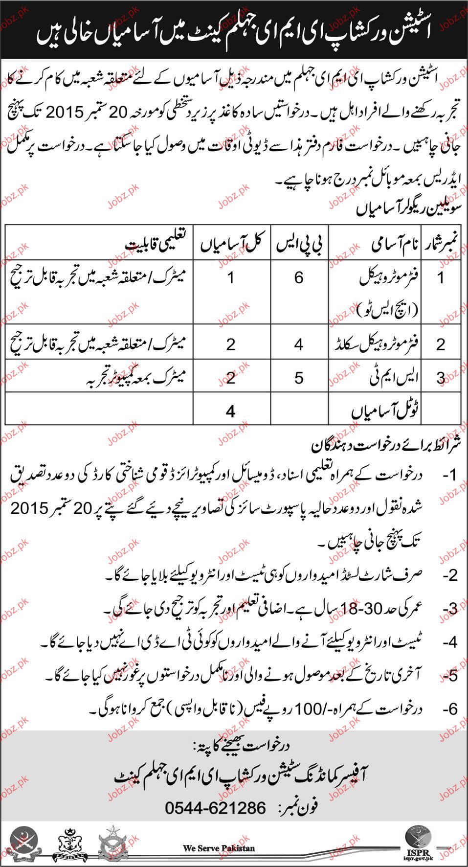 Latest Pakistan Army Industrial Posts Jhelum 2025