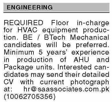 Private Company Manufacturing invites applications for job positions advertised in daily Dawn dated 8 May 2022 for following vacancies in Karachi, karachi Sindh Pakistan.