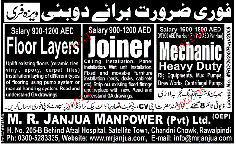 Floor Layers, Jointers And Heavy Mechanics Job Opportunity