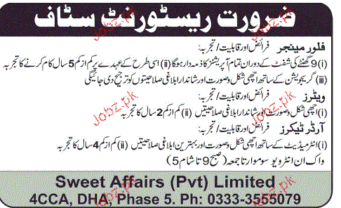 Floor Manager, Waiters and Order Takers Job Opportunity