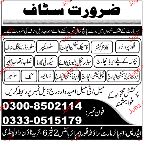 Apply as per details in job advertisement. Login to view further details of how to apply via https://www.jobz.pk online.