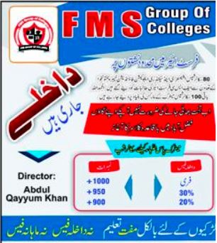 FMS Group of Colleges admissions 2024 for Pre Medical, Pre Engineering has been announced. Eligible students can apply for academic admissions 2024 in FMS Group of Colleges Charsadda Khyber Pakhtunkhwa KPK Pakistan for Teaching College. Students for admissions in Intermediate can apply for online or campus classes as per Private institute criteria till admission closing date September 10, 2024. Read newspaper ad for exact details.
