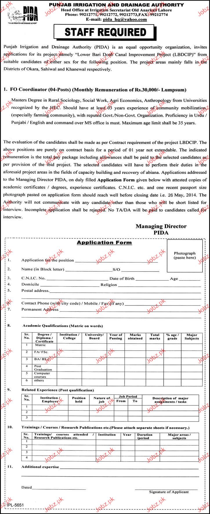 FO Coordinators Job In Punjab Irrigation And Drainage