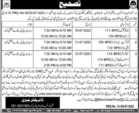 Food Department invites applications for job positions advertised in daily Jang dated 6 July 2023 for following vacancies in Quetta, quetta Balochistan Pakistan.