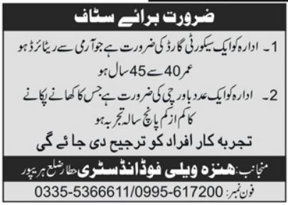 Food Industry is looking for candidates for following posts as per job advertisement published in daily Aaj Newspaper of October 12, 2022 for location Hangu, haripur Khyber Pakhtunkhwa KPK Pakistan: