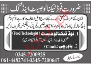 Food Technologist Cook Jobs In Multan