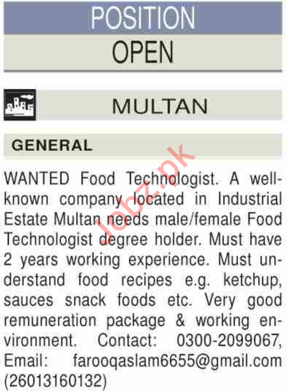 Apply as per details in job advertisement. Login to view further details of how to apply via https://www.jobz.pk online.