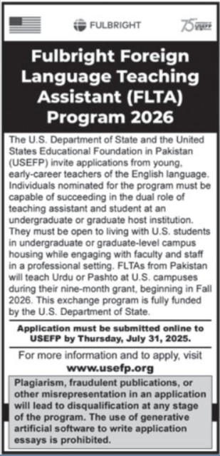 United States Educational Foundation in Pakistan USEFP latest Private Management jobs and others can be applied till July 31, 2025 or as per closing date in newspaper ad. Read complete ad online to know how to apply on latest United States Educational Foundation in Pakistan USEFP job opportunities.