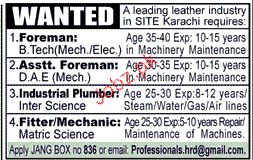 Foreman, Assistant Foreman, Mechanics Job Opportunity