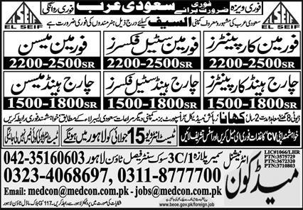 Foreman Carpenter and Chargehand Mason jobs in Saudi Arabia