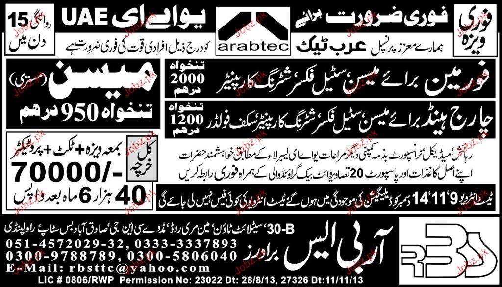 Apply as per details in job advertisement. Login to view further details of how to apply via https://www.jobz.pk online.