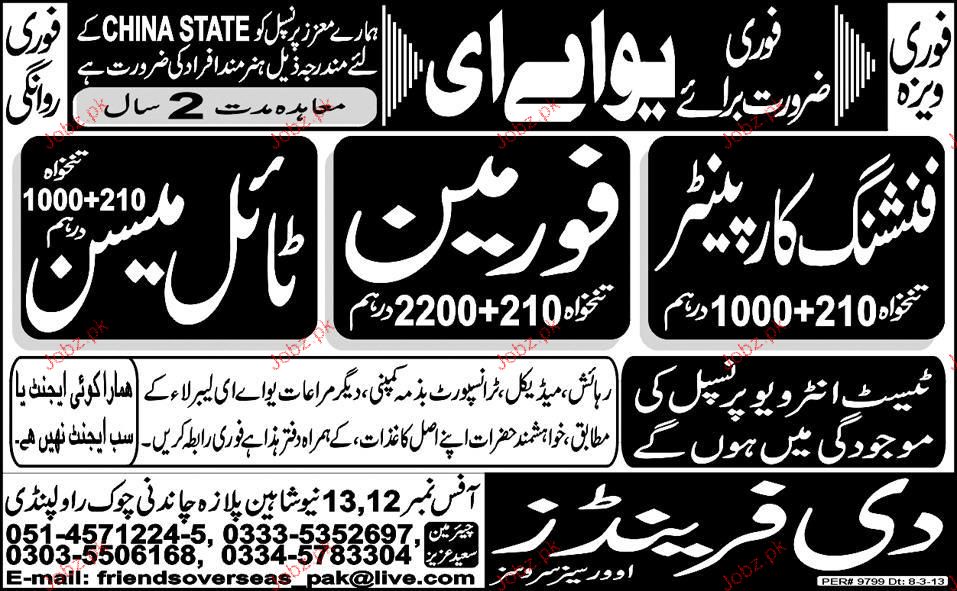 Foreman, Finishing Carpenters And Tile Mason Wanted